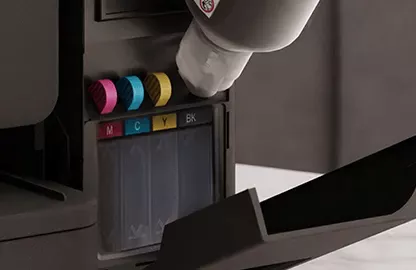 採用防溢出、無髒亂且精確的卡榫式自動注墨技術。輕鬆監控和補充墨水量,確保每次補充乾淨、準確。